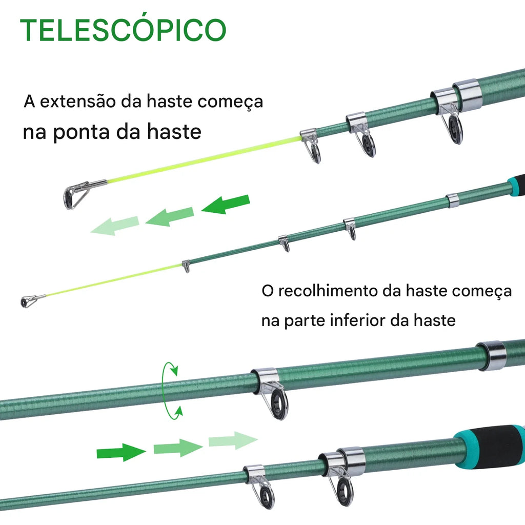 Design Telescópico: Compacta e portátil — leve sua vara para onde quiser sem ocupar espaço.