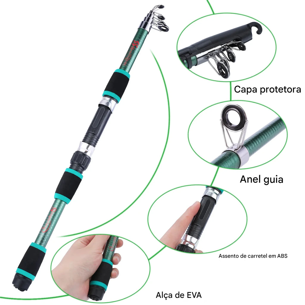 Descubra o equilíbrio perfeito entre leveza e resistência com a Vara de Pesca Telescópica 1,8m. Fabricada com uma combinação de fibra de vidro (80%) e fibra de carbono (20%), oferece alta durabilidade e desempenho estável — ideal para iniciantes, jovens e pescadores ocasionais.